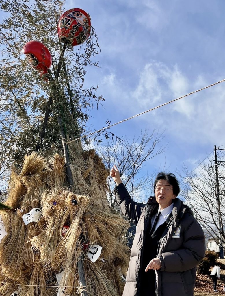 ホーム「待ちに待った、三九郎です」 「待ちに待った、三九郎です」活動報告 恒例の松本市の子供さんの行事にお邪魔しました。僕も古いダルマさんをお出しし、1番高いとこに置いて頂きました。今日は風もなく晴天で絶好の日和でした。お子さんと一緒に焼きマシュマロ、小さな団子、食べると「無病息災」とのことで、熱々、はい、頂きました。美味しかったです! 町会の皆様、本日は楽しい会、本当にありがとうございました。参加された全てのお子様やお家族の皆様に今年一年幸多かれとお祈りいたします。
