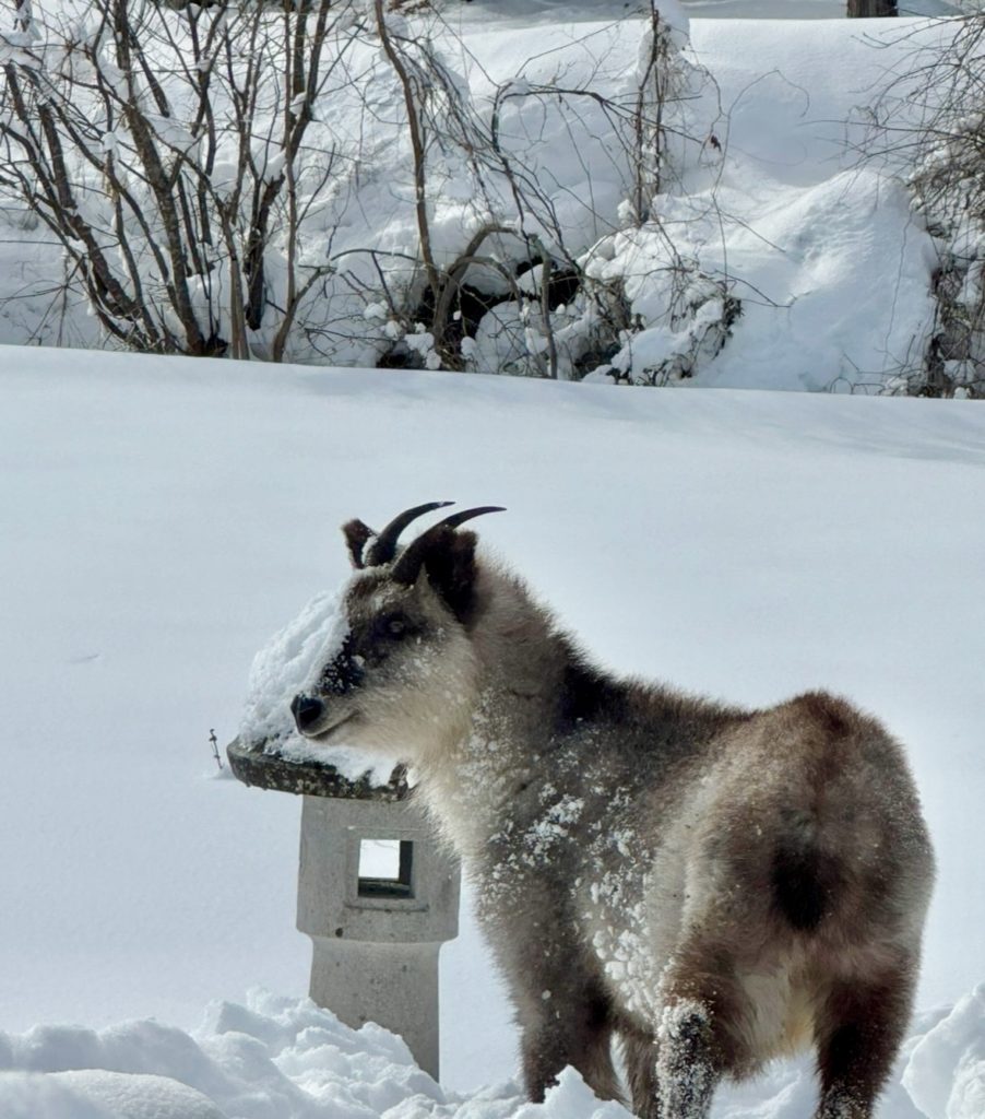 ホーム「え、まじか!」 「え、まじか!」活動報告 北信地区のご挨拶回りをしておりましたら、何と「カモシカくん」の登場でした。 民家のそばに警戒心が無くていましたが、僕が車から降りたら、あっという間に森に帰ってしまいました。鹿は随分見てきましたが、カモシカくんはほとんどないです。お顔もとても可愛かったですよ。明日から国会が始まります、頑張れとの激励かなとか勝手に考えておりました。僕たち人間は自然の君たちの棲み家を荒らしたりしないからねと、後ろ姿に思いました。また会えたらね、バイバイ!
