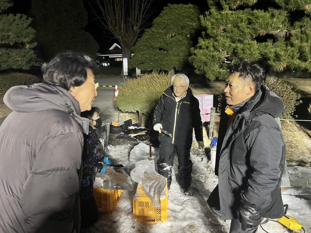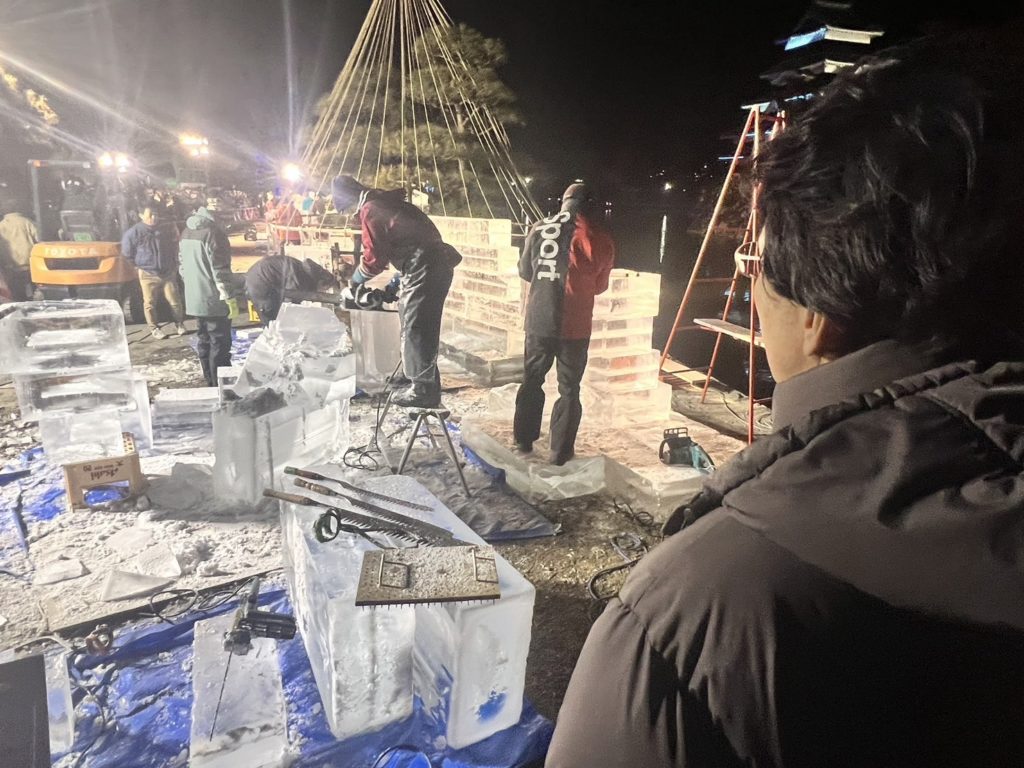 ホーム国宝松本城氷彫フェスティバルです 国宝松本城氷彫フェスティバルです活動報告 いよいよ、僕の大好きな松本城をバックにした大会が始まりました。指南役の伝統芸術会の小野先生の白鳥の作品から始まり、夜を徹してこれから作品が完成していきます。 寒い中、参加者の皆様、本当にお疲れ様です。明日の完成品と表彰楽しみしています。頑張ってください❗️