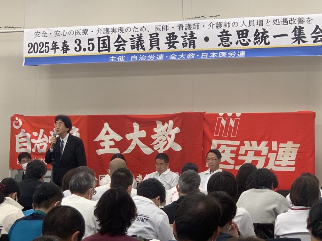 ホーム医労連の議員要請意思統一集会です 医労連の議員要請意思統一集会です活動報告 医療や介護現場で働く皆様の賃上げ、労務環境整備などの切実な要請でした。僕からも昨日の残念な予算の可決、また高額医療費引き上げ凍結などについて経過などご説明させて頂きました。いつも思います、人の命よりも重いものはありません、引き続き皆様のご要請をしっかりと野党で絆を結んで政府に要請して参ります。本日は多くの方々による熱気のある集会、誠にお疲れ様でした。共に頑張りましょう!