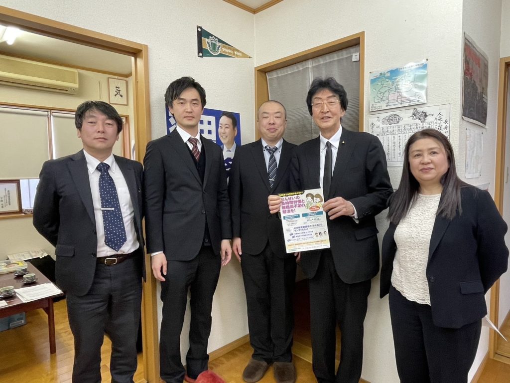 本日、県教組から岩下書記長と県高等学校教組から黒澤副委員長や役員の皆様がご来所されました。