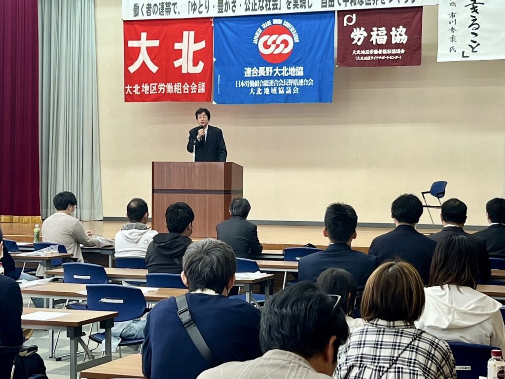 ホーム第96回大北地区中央メーデーです 第96回大北地区中央メーデーです活動報告 公務が重なっており少し遅れて到着しましたが、丁寧なご対応して頂きありがとうございました。 僕からは「昨年の総選挙での与野党逆転により、長年の自民政治の膿が出てき来てます。この夏の参議院選挙こそ正に大きな政治の転換になります。皆様の単組の候補者、長野地方区では羽田次郎さんを是非、応援して頂きたいです。」とご挨拶させて頂きました。日曜日にも関わらず、多くの働くお仲間が集まられ大盛会でした。本日はお招き誠にありがとうございました!
