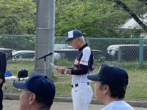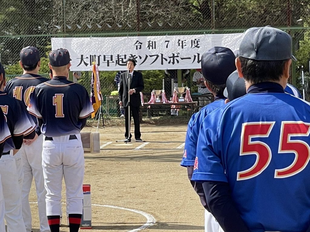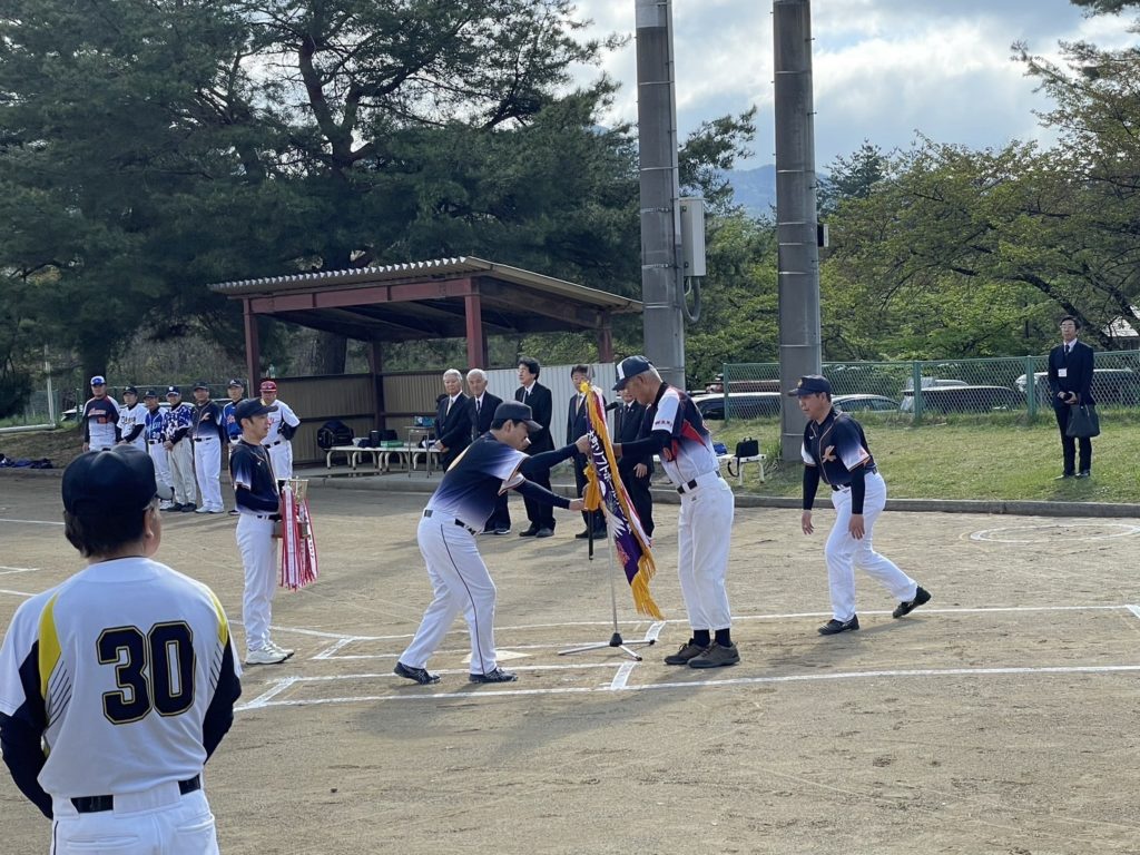 はじめに、上野新会長より静かな語り口ですが、熱い思いのご挨拶があり、その後、前年度優勝の神栄町チームより優勝旗返還などがありました。