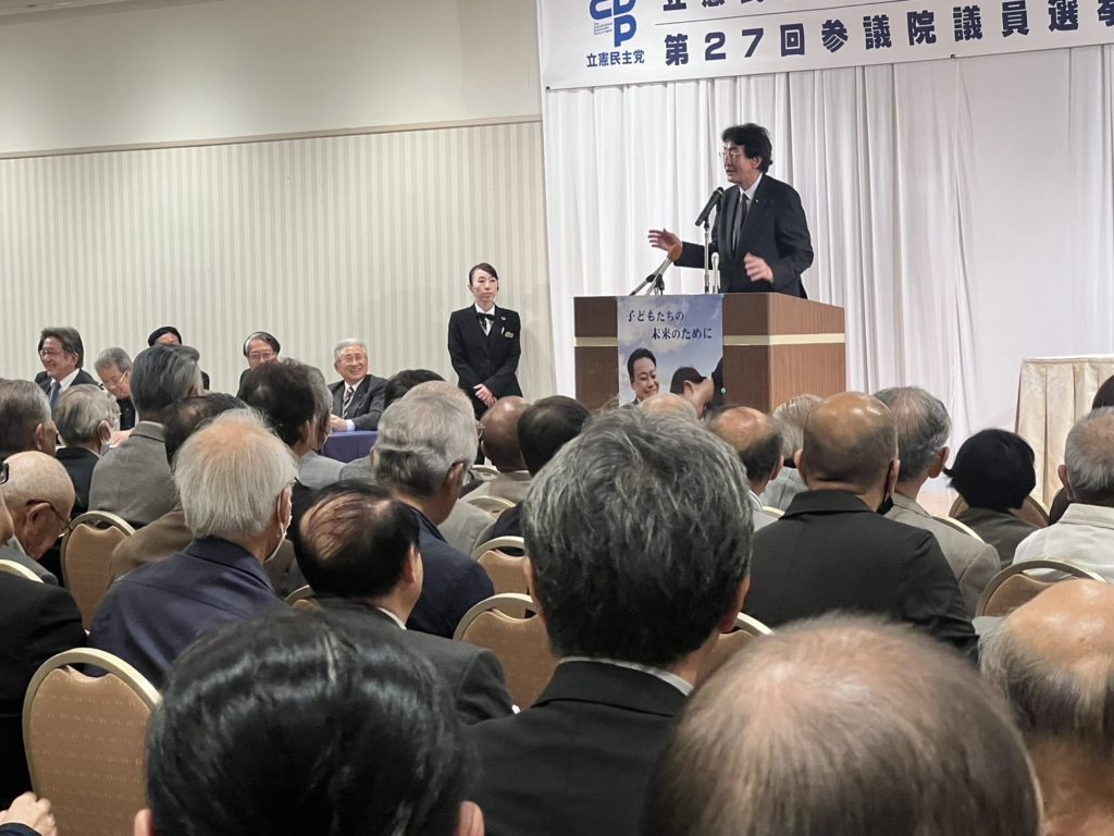 その後、大串博志選対委員長より、国会情勢や一人区で何としても議席を守る様にとのお話があり、それを受けて羽田次郎候補予定者より、静かですが気持ちのこもった熱い決意表明がありました。