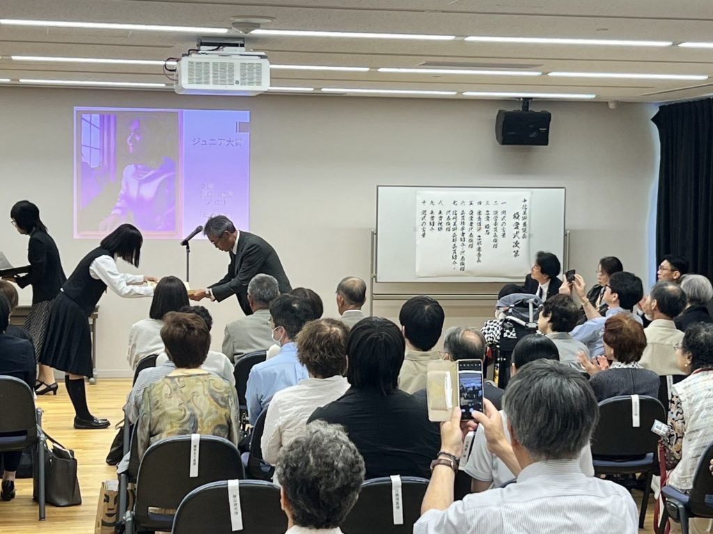 伝統ある授賞式、参加させて頂きました。日本画・洋画・彫刻・工芸、それぞれ、作品を背後に映しながらの受賞となりました。シニアから新人、そしてジュニアに至るまで、その迫力、暖かさ、細かさ、優しさ、それぞれ素晴らしい作品の数々でした。
