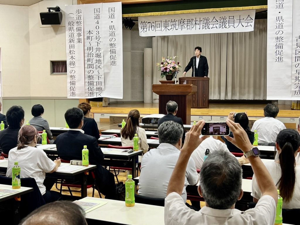 恒例の会、お招き頂きお伺いしました。はじめに大月大会長から活動報告と課題についてお話しがあり、僕から道路問題は、地域の生命線であり、これからも中央にしっかりと繋いで参りますとご挨拶させて頂きました。その後、筑北村から県道整備、朝日村から新田松本バイパスの早期完成、生坂村から国道の整備、麻績村から国道403の早期整備、山形村から県道の歩道整備などのご要望があり、しっかりとお聞き致しました。また、秋に中央要望との事ですが、昨年同様に対応して進めて参ります。本日はそれぞれの村議会同士の強い絆と温かさをとても感じる事ができました。誠におめでとうございました。