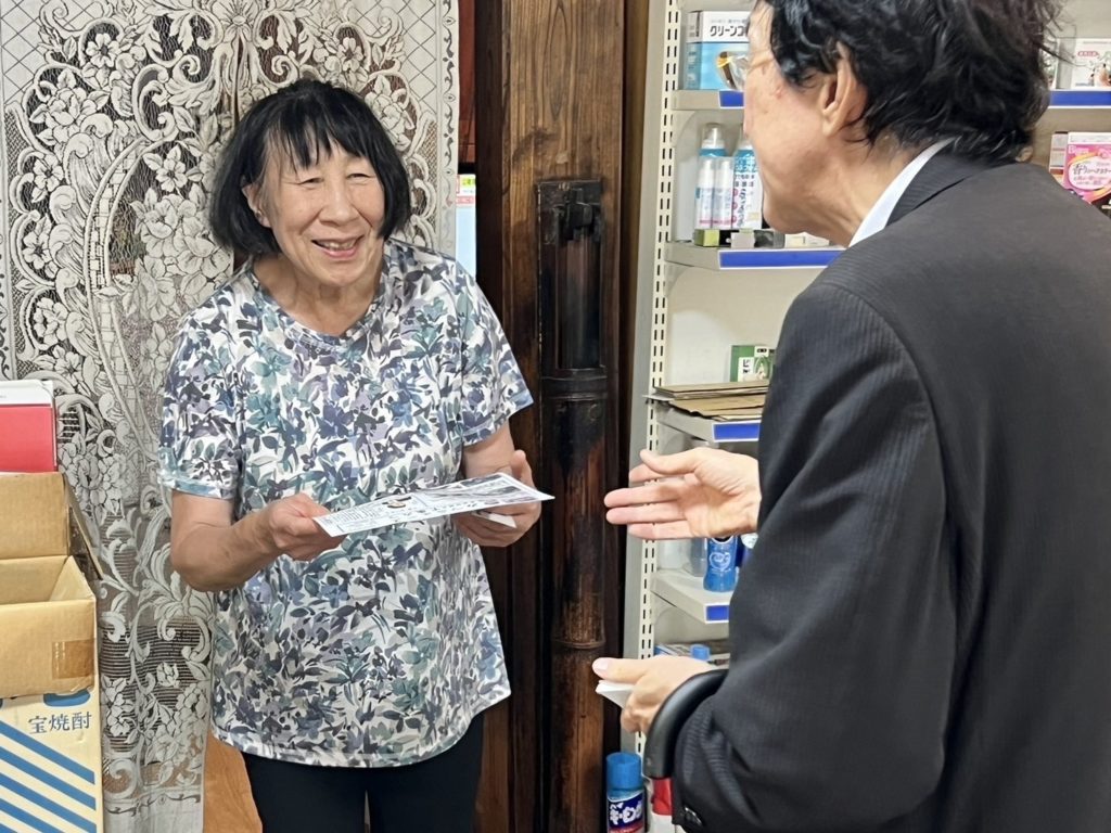 会うなり、「私らは、商売をしてるけど年金で何とか食いつないでるのよ。景気が悪くて全然売り上げが上がらないのに、何でも高くなってる。何とか、消費税とか減税して、私らの生活を助けて欲しい。みつさん、よろしくね。」とのお話しでした。