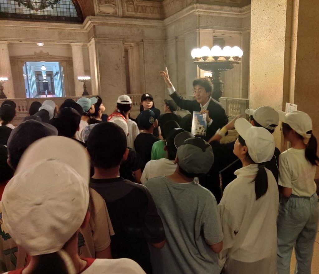 ホーム「皆んな元気に来てくれました」 「皆んな元気に来てくれました」活動報告 今日は松本市、大町市の皆んなが朝早くからバスに何台にも乗って見学に来てくれました。僕が税金、衆議院の役割、政治を決めるのは全て多数決など話をしましたら、とても真剣に聞いてくれて、その後矢継ぎ早の質問でした、ふふ。皆んなが少しでも政治に感心を持って貰えればとても嬉しいです。気温も34度以上の中、元気に見学してくれました、お疲れ様でした。とても良い生徒さん達でしたよ、元気でね、またお会いしましょう‼️