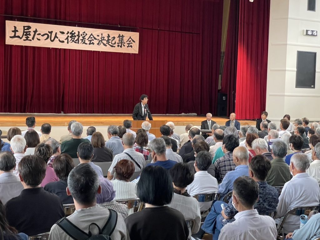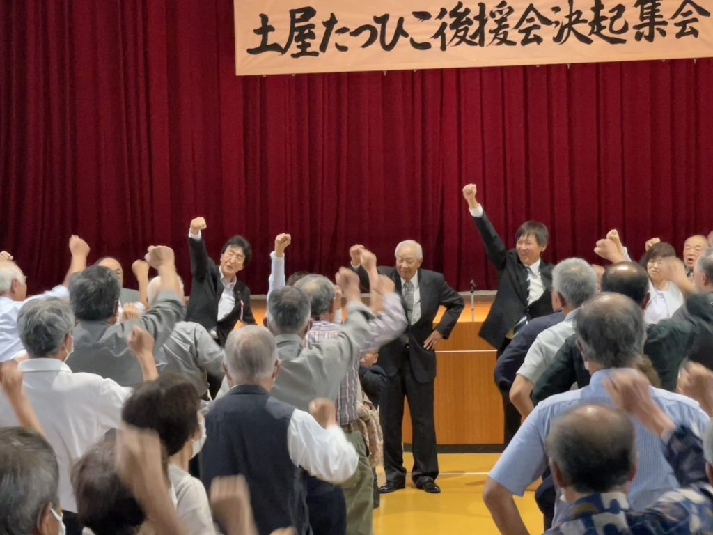 今回の町長選は、現在で4名も出る予定で大変激戦が予想されますが、僕も、昔からお世話になっており、役場の要で大変汗をかかれてきた、また、現町政をしっかりと継いで更に伸ばせる土屋さんの応援に参りました。