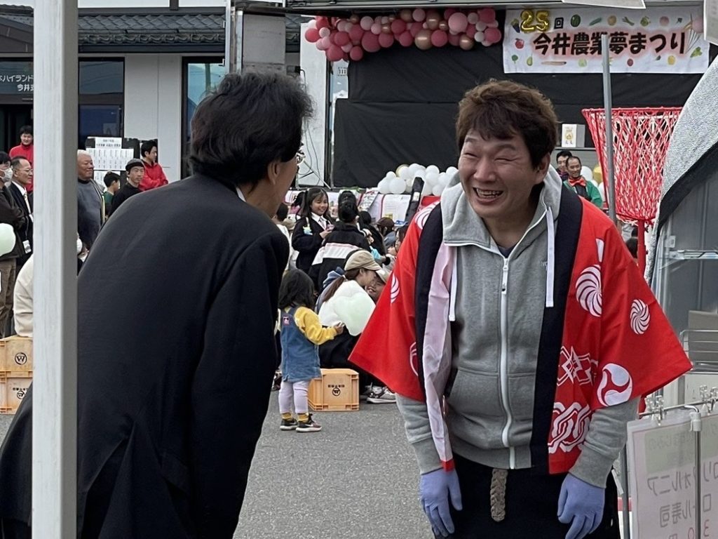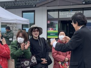僕も多くの後援会の方々とお会いでき、はい、野菜、魚、りんごなどとても新鮮で買わせて頂きました。