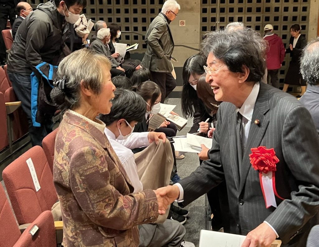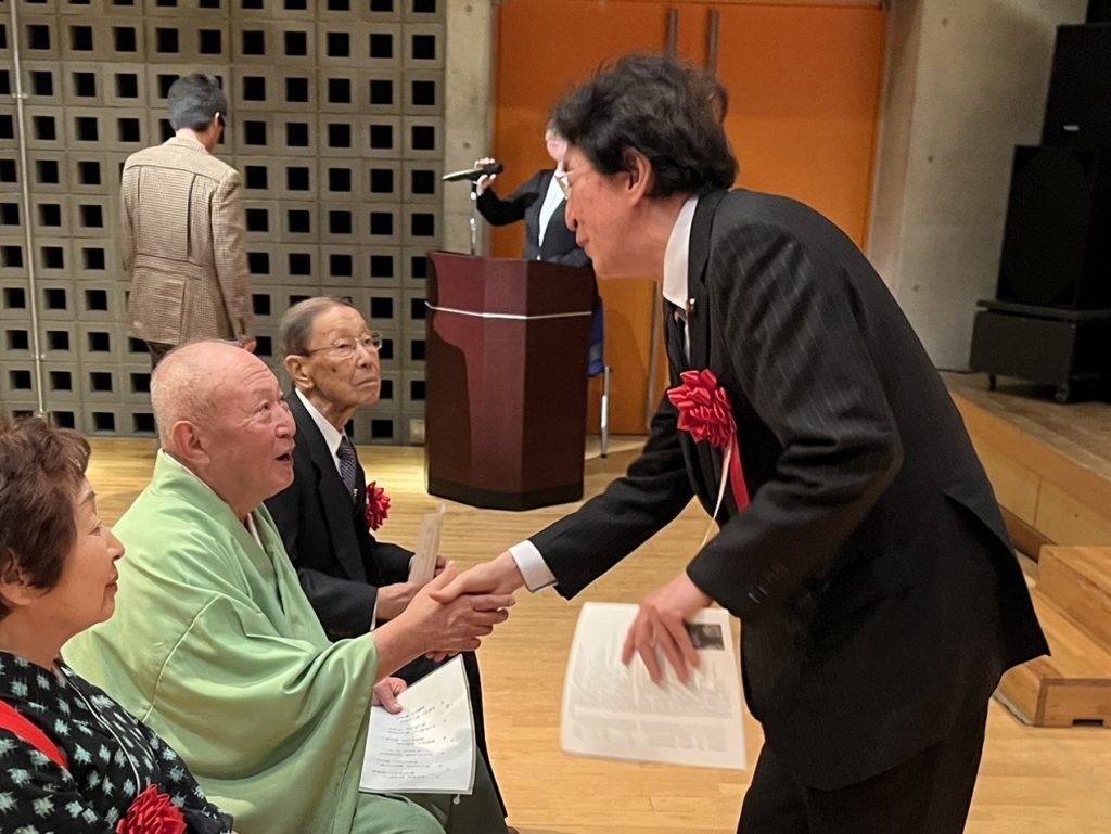 公務を終えて新幹線を使って駆けつけました。この信州を代表する民謡は、榛葉太生先生が作られてから100年に渡り途絶えることなく伝わってきたもので、先人の皆様のお陰様であります。本日も多くのご関係者が集まられお祝いとなりました。そして功労者表彰などの後に、歌詞の入賞者の小学生、中学生、一般の部の方々の歌詞を先生が生演奏で歌われ、僕も真横でお聞きしましたが、風景やお気持ちがとても伝わる素晴らしい作品でした。本日は誠におめでとうございました。この安曇節がこれからも長く伝承され、地域の強い絆の元になりますことを心よりお祈りしております。