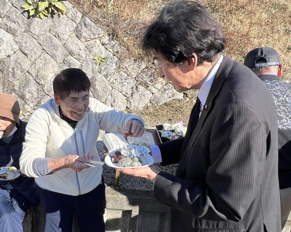 後援者の皆様の掛け声と共に僕も、「よいしょ!」と突かせていただきました。
