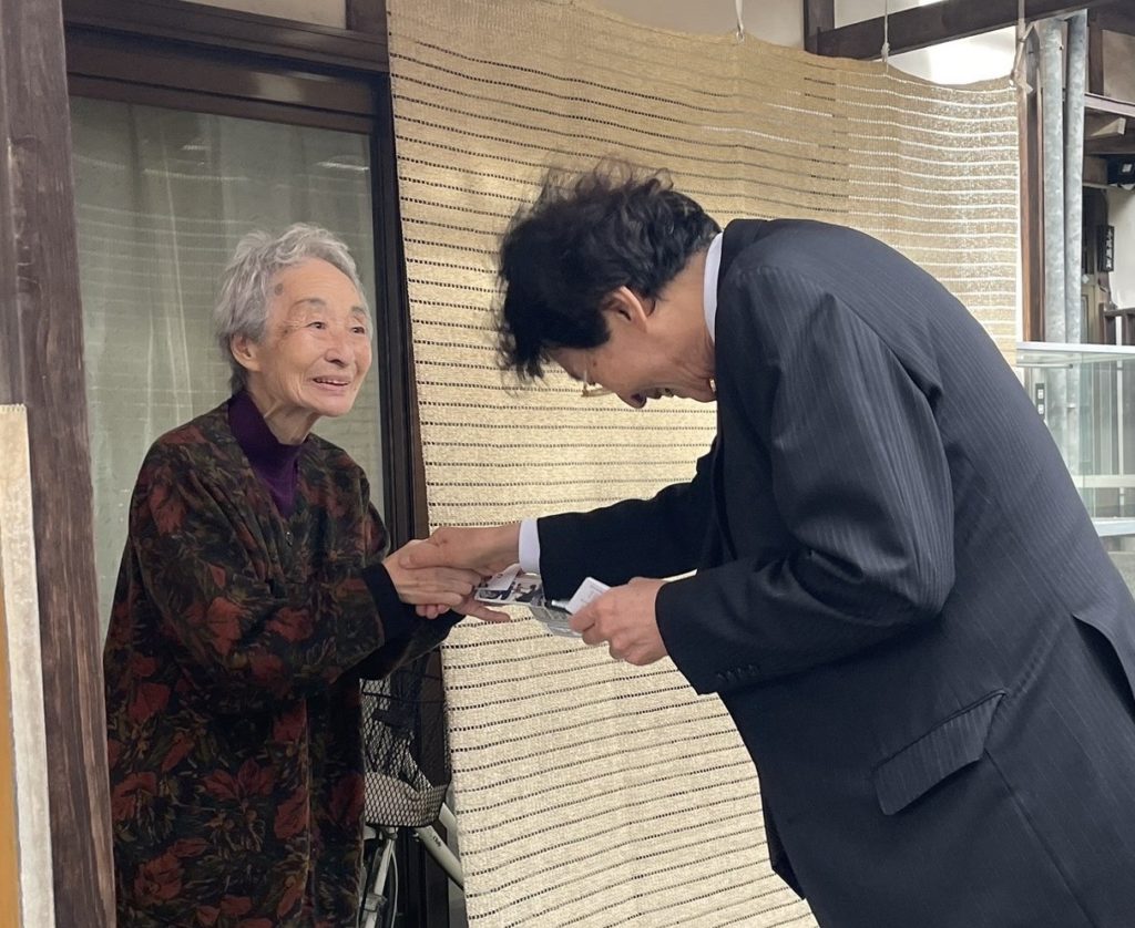 会うなり「いつも応援してますよ、政治がとても心配、戦争だけは嫌ですよ。身体に気をつけて頑張って!」とのお声を頂きました。