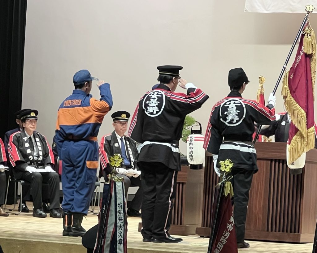 ホーム安曇野市消防団出初式です 安曇野市消防団出初式です活動報告 出初式式典動画 はじめに安曇野市や高橋団長より感謝と激励のお話しがあり、その後、消防協会や行政からの表彰がありました。僕からも点検・整備、訓練、出動や夜警などへの感謝をさせて頂きました。皆様があって市民の安心安全があります、どうか今年一年、身体に気をつけられ任務を遂行してください。本日は誠におめでとうございました❗️