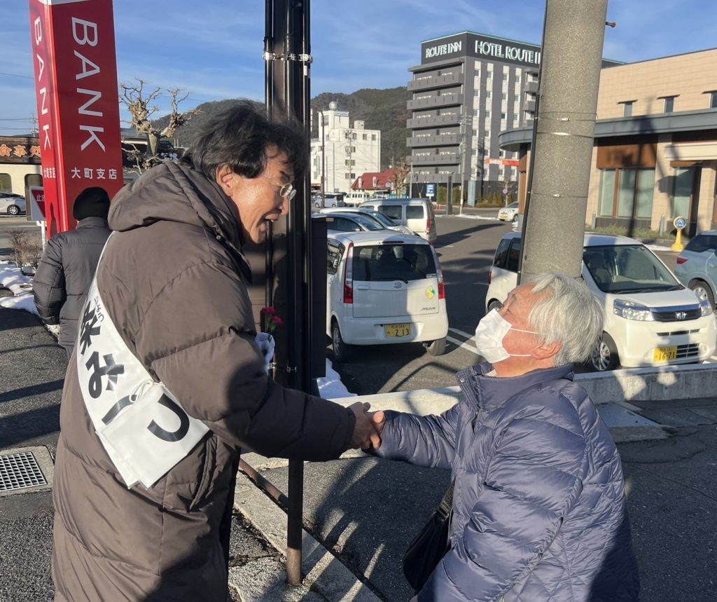 ホーム大町市街頭演説会です 大町市街頭演説会です活動報告 中道の応援団や後援会、組合の皆様が集まられました。はじめに太田昭司市議より心のこもった熱い激励を頂き、僕からも中道の大切さ、戦争反対などのお話しさせて頂きました。皆様の温かい真心をとても感じました。厳しい闘いですが、全身全霊で駆け抜けます。本日は寒い中、特に、ある奥様は、どうしても見送りたいので杖付きながら待ってて頂き、皆様の気持ちに胸を打たれました。ありがとうございました。本日入れて後4日で、頑張ります何卒宜しくお願い致します。