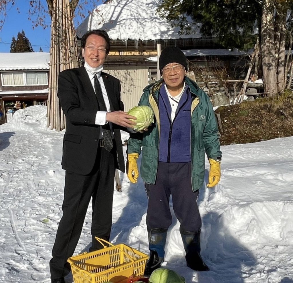 大北地区の後援会の方のお宅にご挨拶に参りましたら、天気も晴天で、雪中キャベツの収穫中でした。