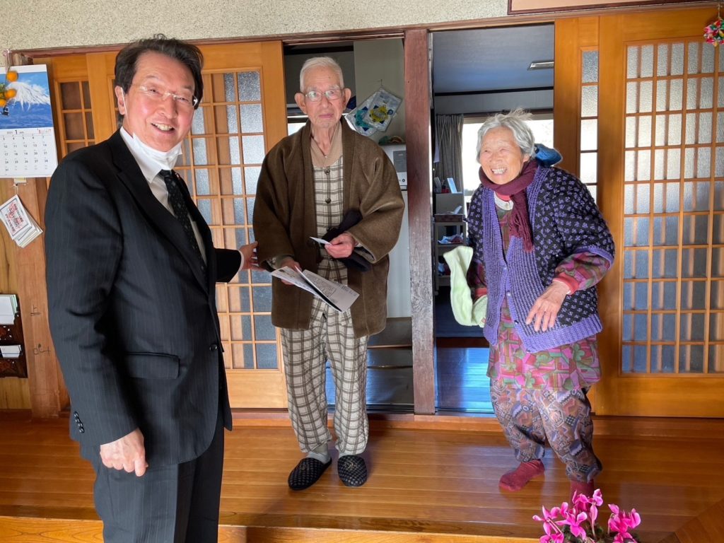 ホーム北信地区のご支援者のお宅にて 北信地区のご支援者のお宅にて活動報告 最初からの応援団のご夫婦で、新年のご挨拶もかねお見舞いにお伺いしました。 ご主人が96歳、奥様が92歳、とてもお元気で仲良く、「僕の理想的なご夫妻ですね。」とお話したら、奥様が照れて笑ってらっしゃいました。 明日から国会が始まりますので、頑張ってきますとお伝えしましたら、「年金、頼むぞ!」との一言。やはり、そうですよね。 これから益々寒くなります、くれぐれもお大事にしてください!