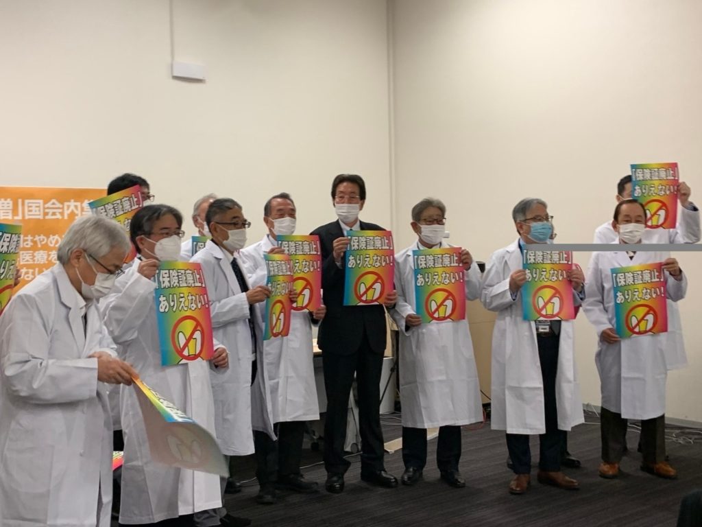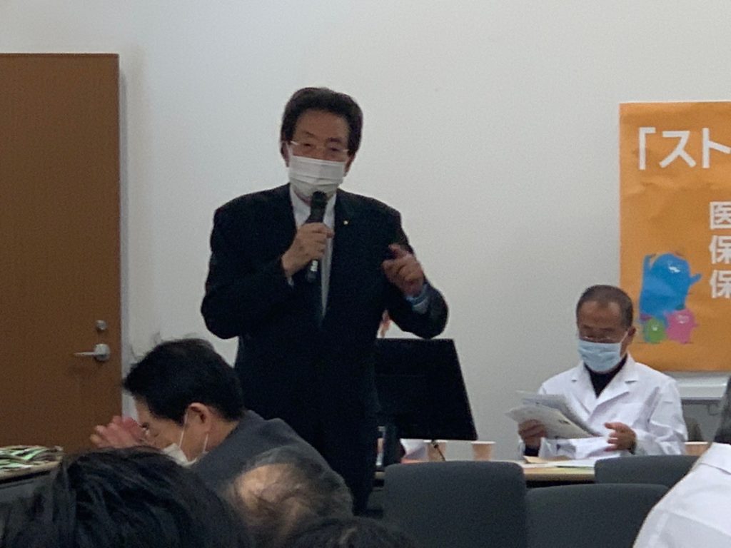 ホーム全国保団連の集会です 全国保団連の集会です活動報告 住江会長の行き届いたご挨拶のあと、僕から、防衛費へ増税対応の問題点、保険証を廃止はお年寄りが不自由、75歳以上の窓口負担増はありえない、などお話しさせて頂き、みんなで、「保険証廃止反対!」のシュプレヒコールをしました。 税金は、国民の皆様の命を守る為に、最優先で使うべきです!