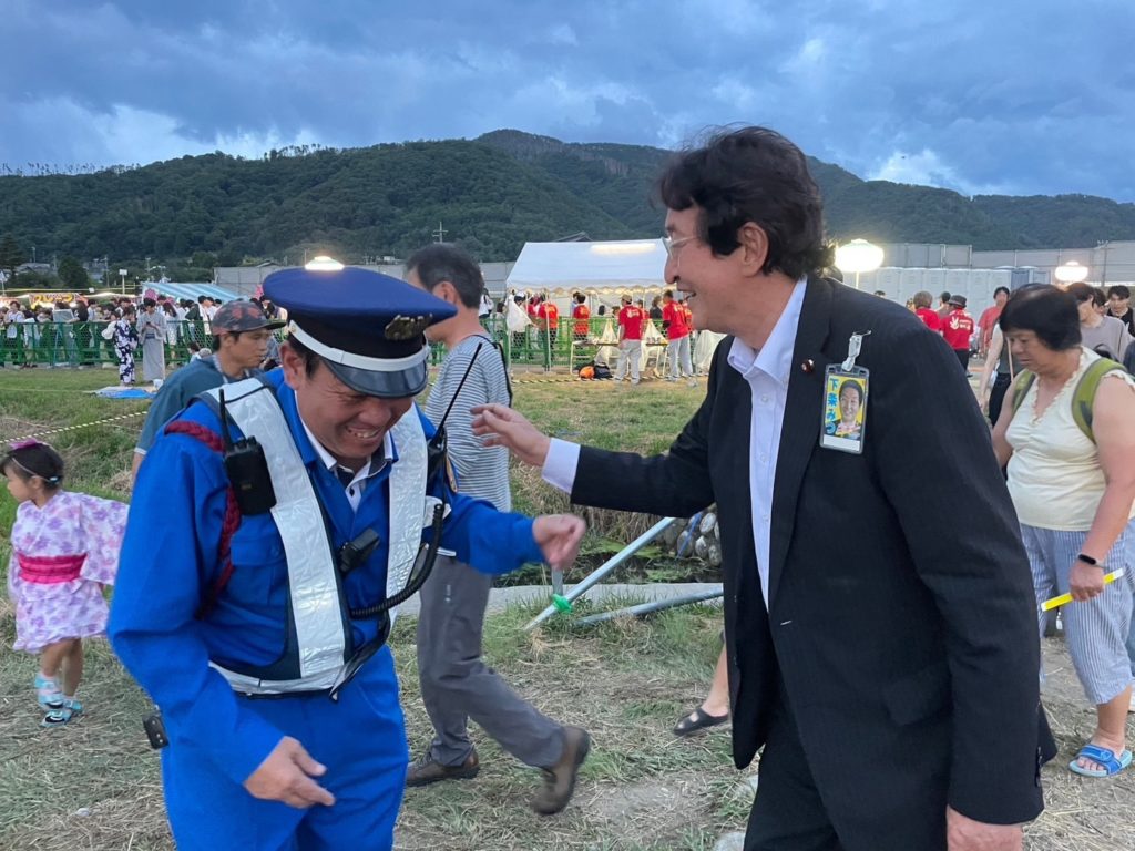 こちらも、天気が心配されてましたが、主催者、安曇野市長、安協、警察、消防の皆様の汗で、雨雲が始まりましたら、どこかへ飛んで行きました。流石です!