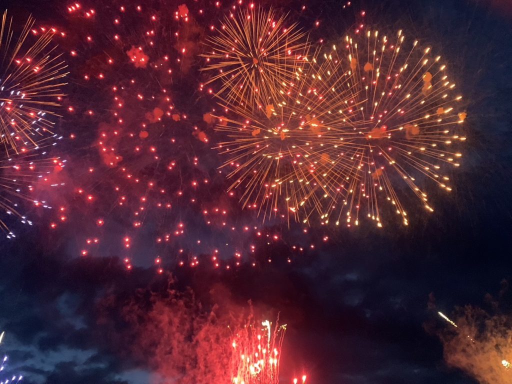 花火の中に、結婚の記念に奥様に送ったり、恋人の誕生日に、それぞれメッセージをつけて、打ち上げてました。おもわず、皆様から拍手が盛大にありました。