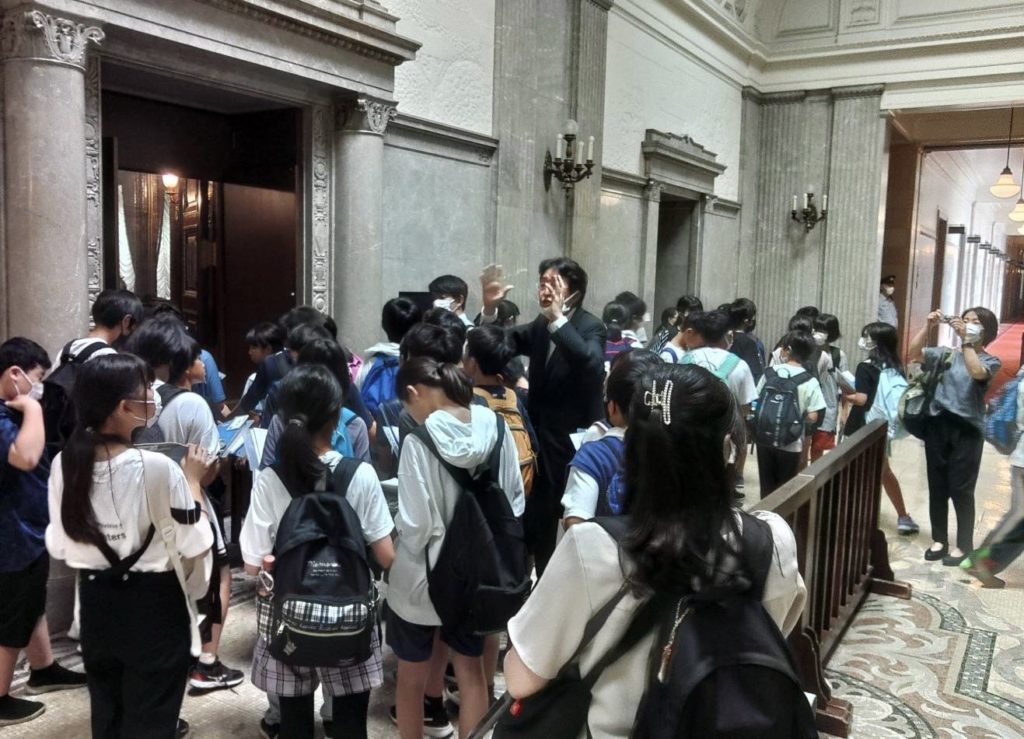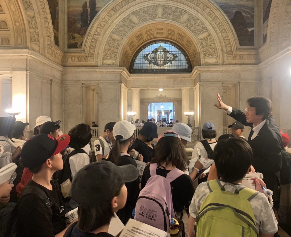 僕からは、国会のシステム、法案の制定、税金の使い道等を決めるところ、などの説明をさせて頂きました。