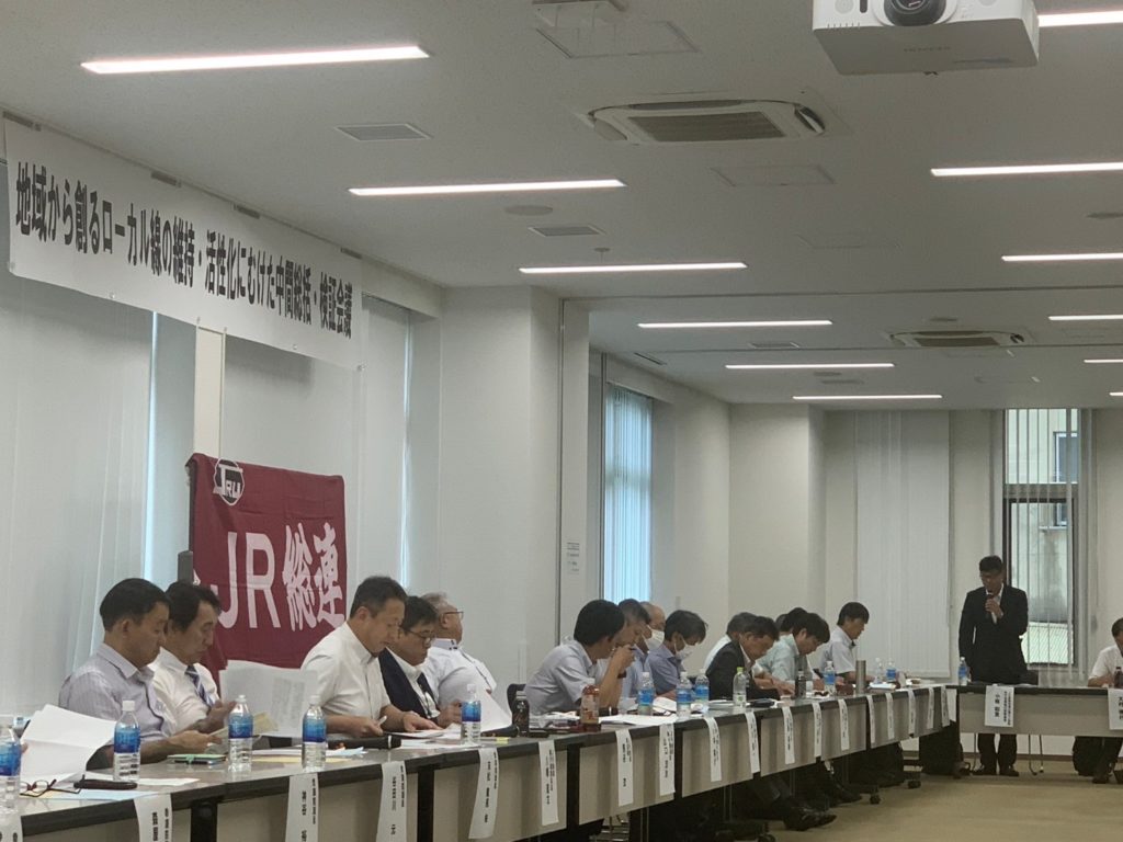 全国のJRで働いている皆様や沿線のNPO、旅館業の方などが集まり、今後のローカル線の維持や活性化について会議を行いました。