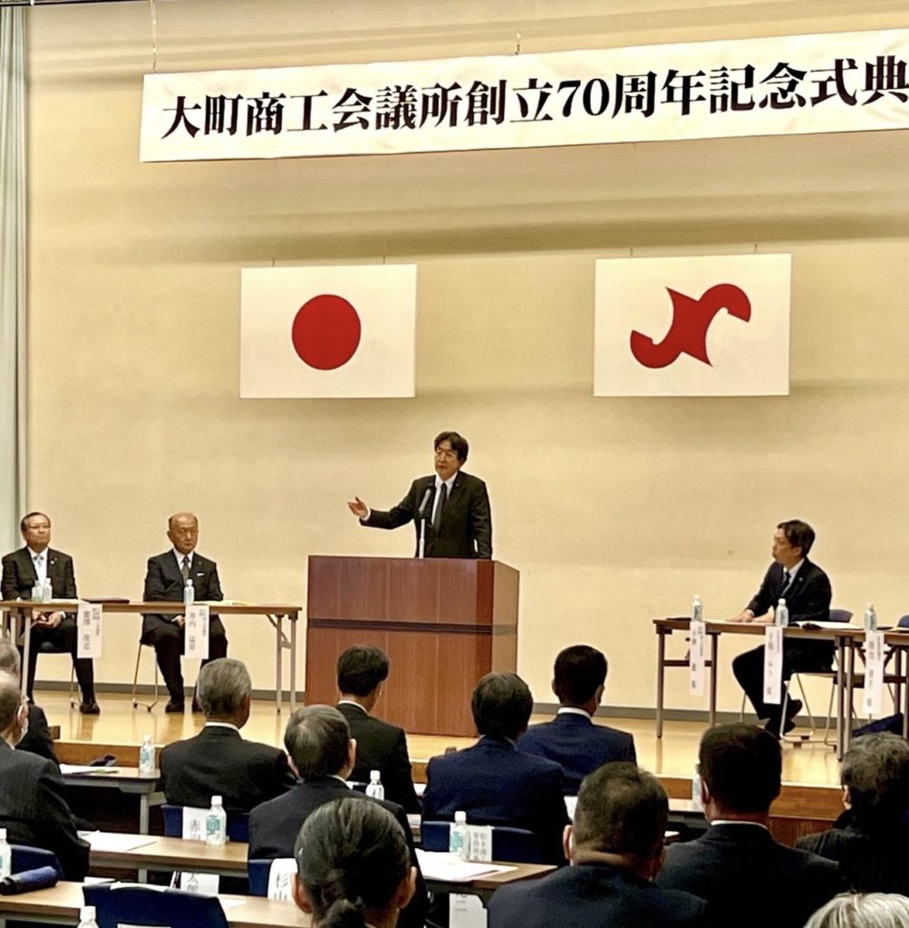 ホーム大町商工会議所創立70周年記念式典です 大町商工会議所創立70周年記念式典です活動報告 井内会頭の今までの経緯と今後への課題の丁寧なご挨拶のあと、僕から商工会とは祖父の代からのご縁でありますのと、地方の皆様の不断の努力への敬意を表し、また喫緊の課題は、道路整備と若者が働きやすくするための減税が何よりも大切とのお話しをさせて頂きました。 素晴らしい大会でした、今後とも皆様の視点に立って地元の発展のため、しっかり対応して参ります。 本日は誠におめでとうございました!