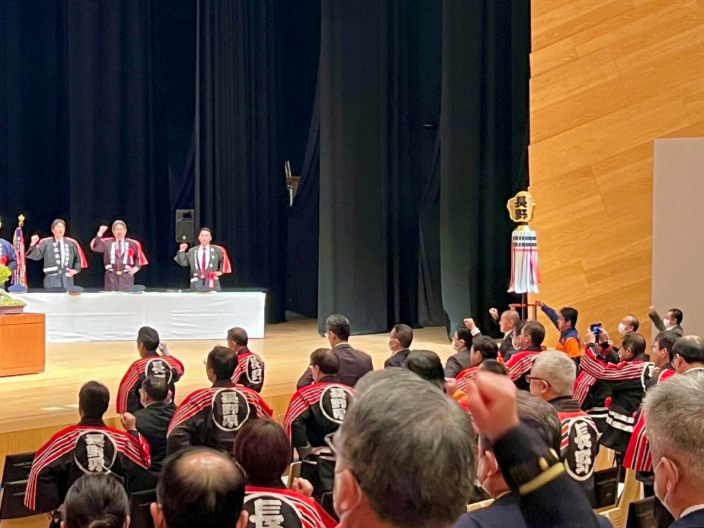 ホーム令和6年長野市消防出初式典です 令和6年長野市消防出初式典です活動報告 例年に比べ、コロナ明けということもあり、多くの団員が参加されてました。荻原長野市長などのご挨拶のあと、僕から「日々の訓練、整備点検、出動、夜警などへの感謝を申し上げます。僕自身も、火災から消防団の方に救って頂き、命拾いをしております1人です。皆様があって、地域がより身近に守られています。どうか今年一年、身体に気をつけられ、任務に頑張ってください!」とお話しさせて頂きました。 最後に「火の用心」の三唱で、閉会となりました。本日は朝から、誠にお疲れ様でした!