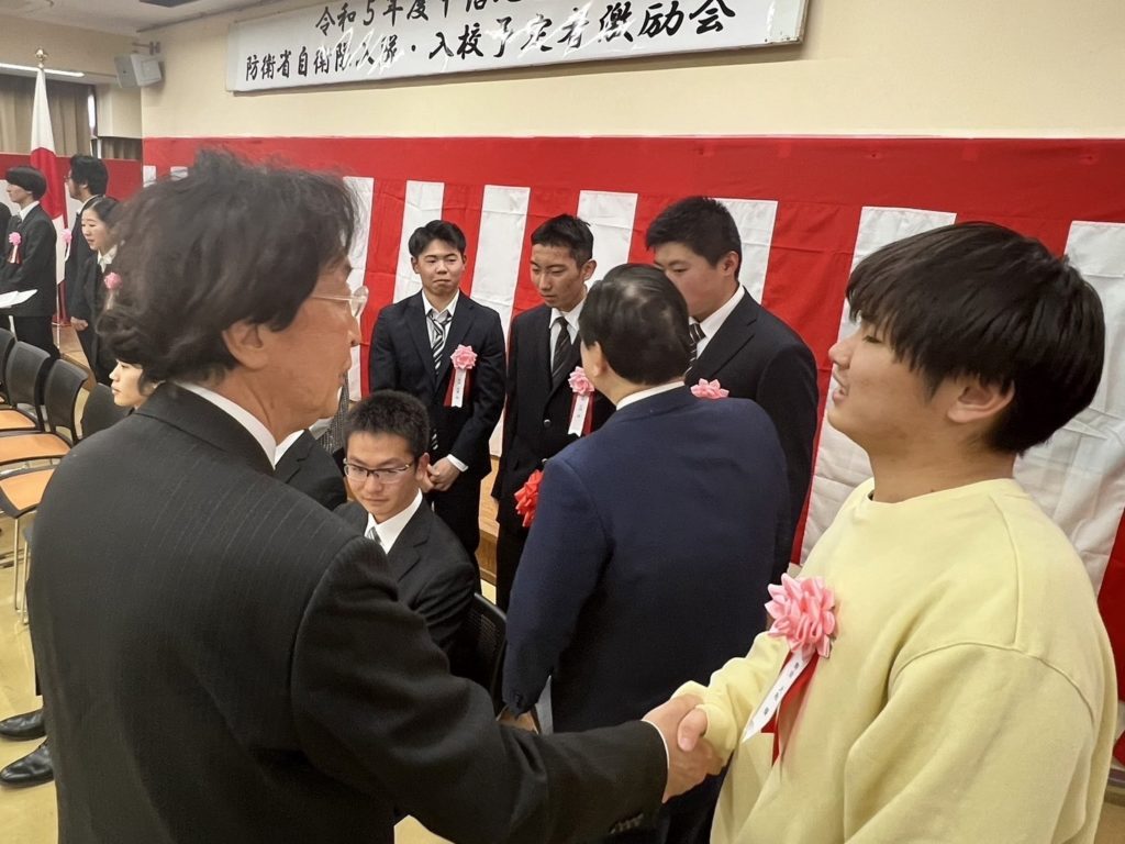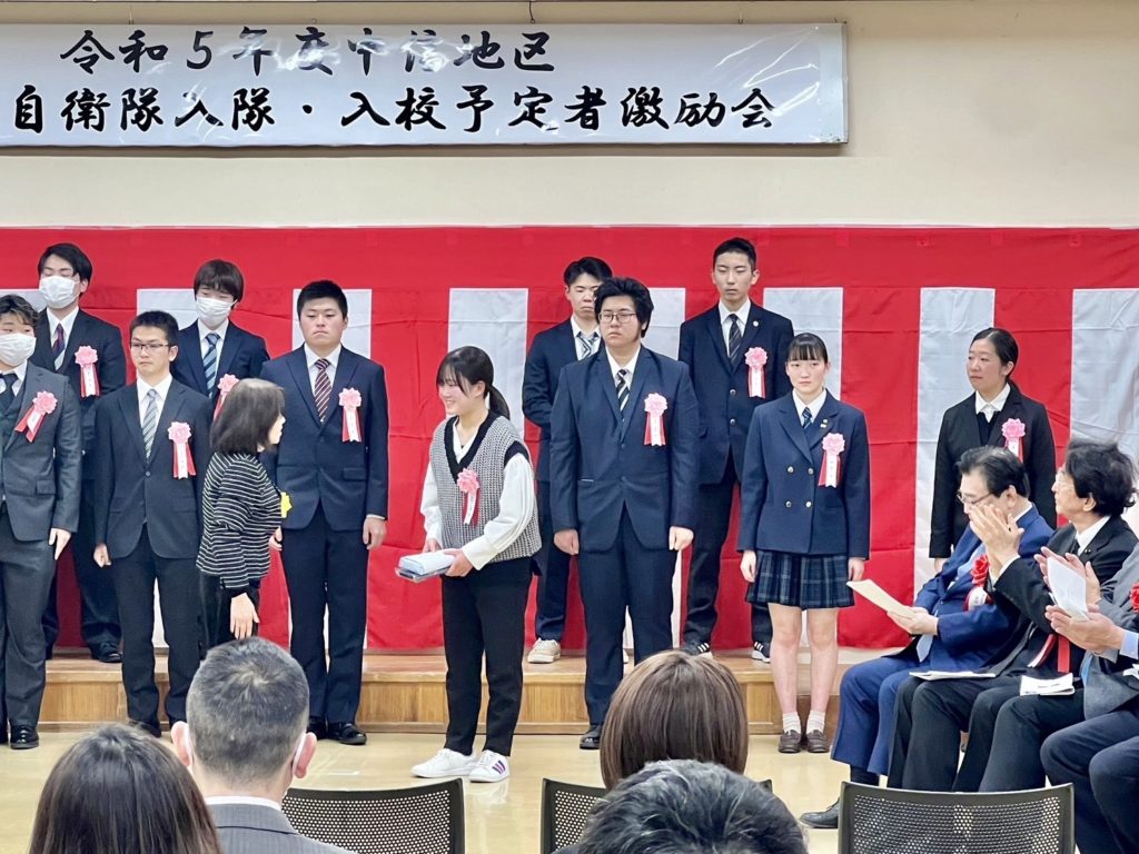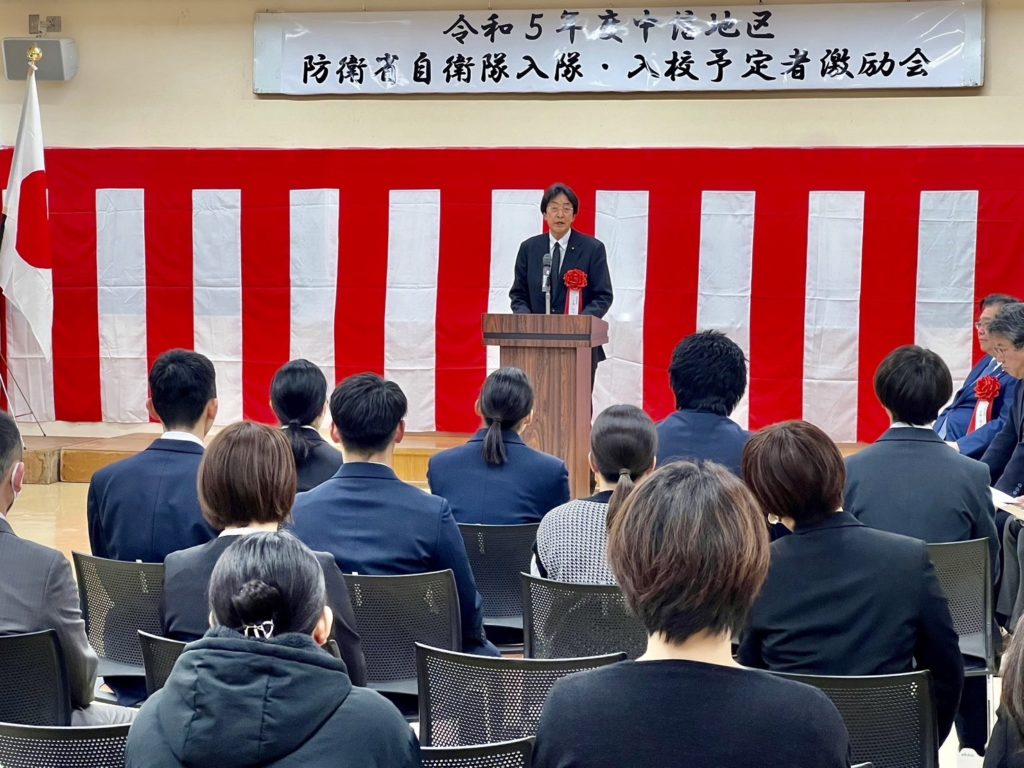 ホーム中信地区自衛隊入隊・入校者激励式典です 中信地区自衛隊入隊・入校者激励式典です活動報告 20名の予定者のお祝いとなりました。 僕から「難関を乗り越えて入隊される皆様、本当におめでとうございました。能登半島地震でも松本から自衛隊が出動しており、自分も防衛省にいた時、東北の震災などがあり、先輩達の素晴らしい活躍を見て参りました。どうか身体に気をつけられ、国防、災害出動など頑張ってください。皆さまは、地元、国の誇りです。」とお話しさせて頂きました。 その後、予定者からの元気な決意表明と記念撮影がありました。皆んな、キラキラした瞳でとても新鮮でした。 いつも応援してます‼️