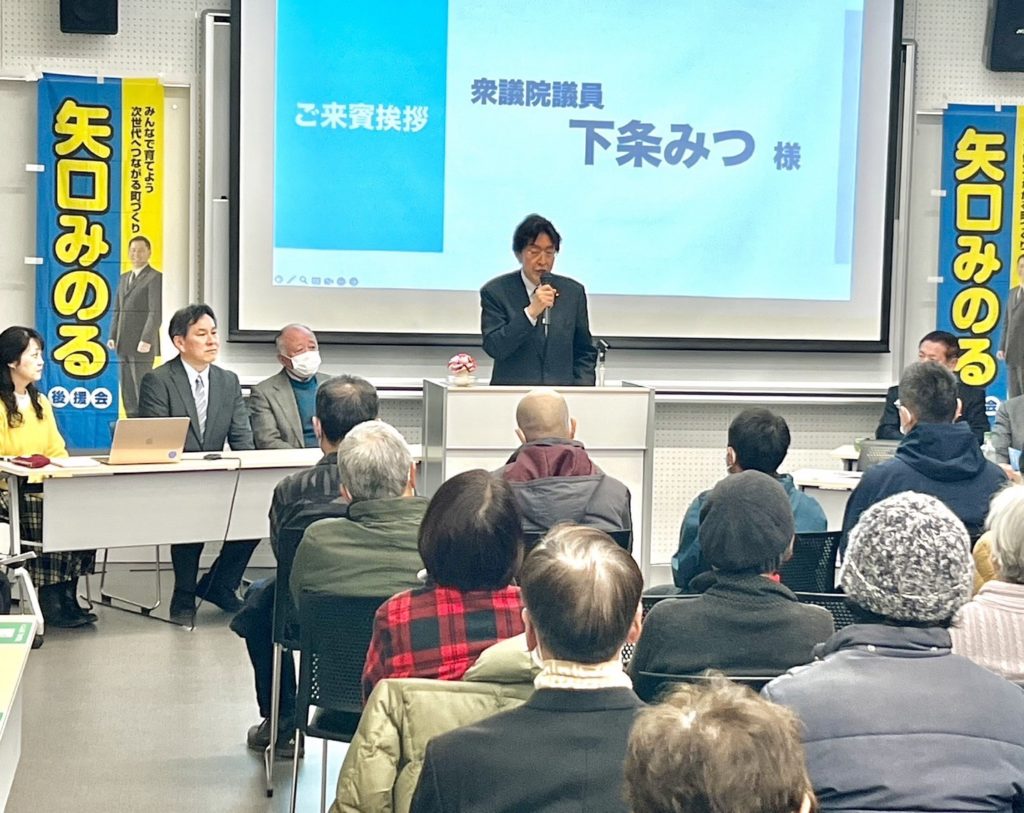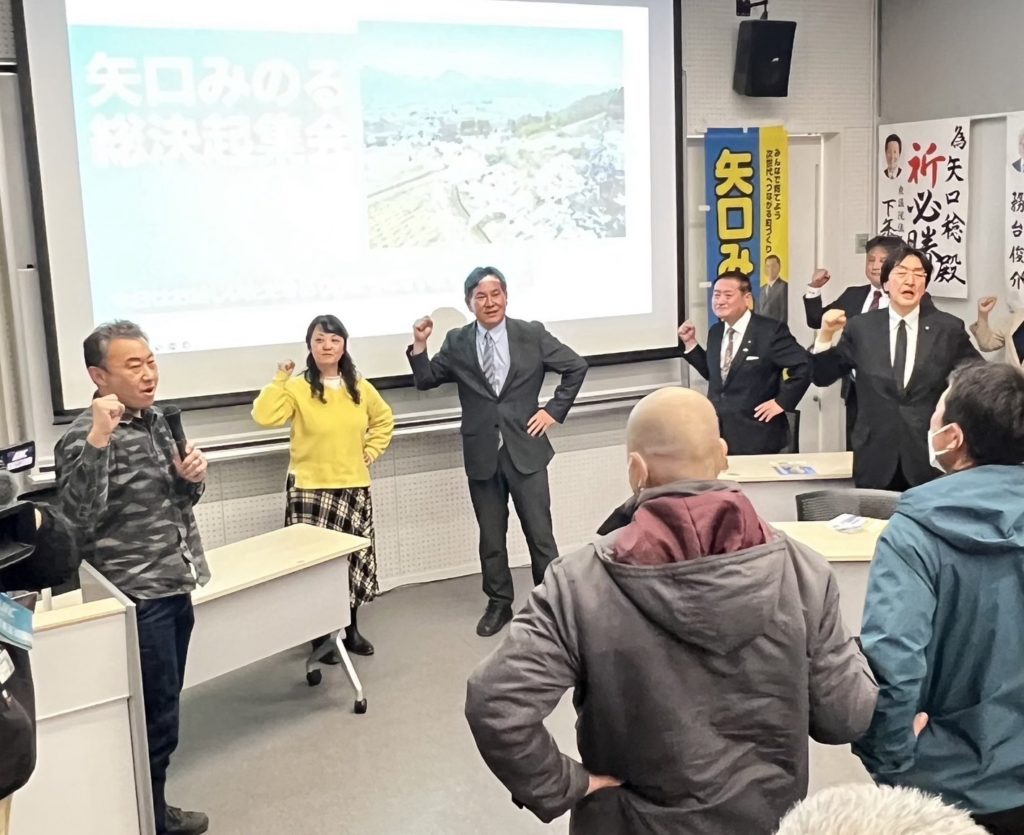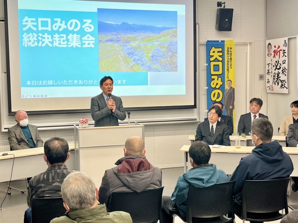 その後、矢口稔候補予定者より、池田町からの県・国への提案をして、財政含めて転換しなければならないなど、喫緊の課題に対しての熱い表明がありました。