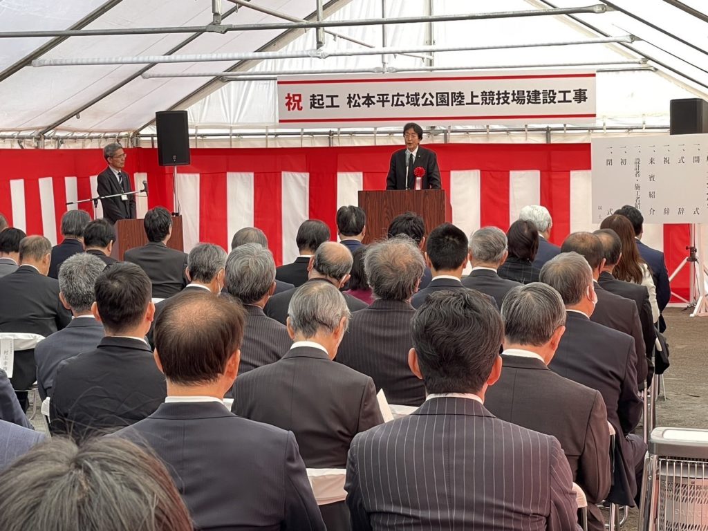 令和10年に開催予定の国民スポーツ大会と全国障害者スポーツ大会に向けて県が進めてきた、老朽化した競技場の建て替えとなりました。ただ、途中、資材等の値上げにより予算が少し増えましたが、皆様のご協力により、何とか本日のスタートとなりました。