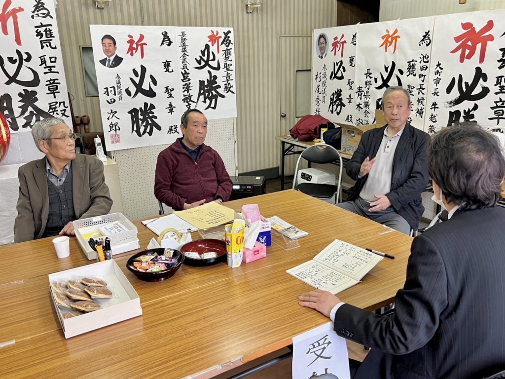 ホーム池田町町長選の現職のもたい聖章候補の選挙事務所です 池田町町長選の現職のもたい聖章候補の選挙事務所です活動報告 大変な激戦になりましたが、幹部がベテランの皆様が多く、落ち着いておられました。 あと少しです、頑張りましょう‼️