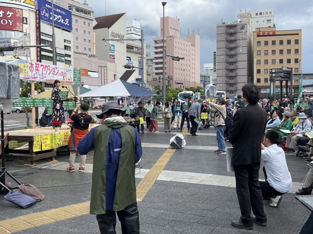 天気も曇り空となり、集会を歓迎してくれてるようで、多くの市民の皆様が集まられておりました。