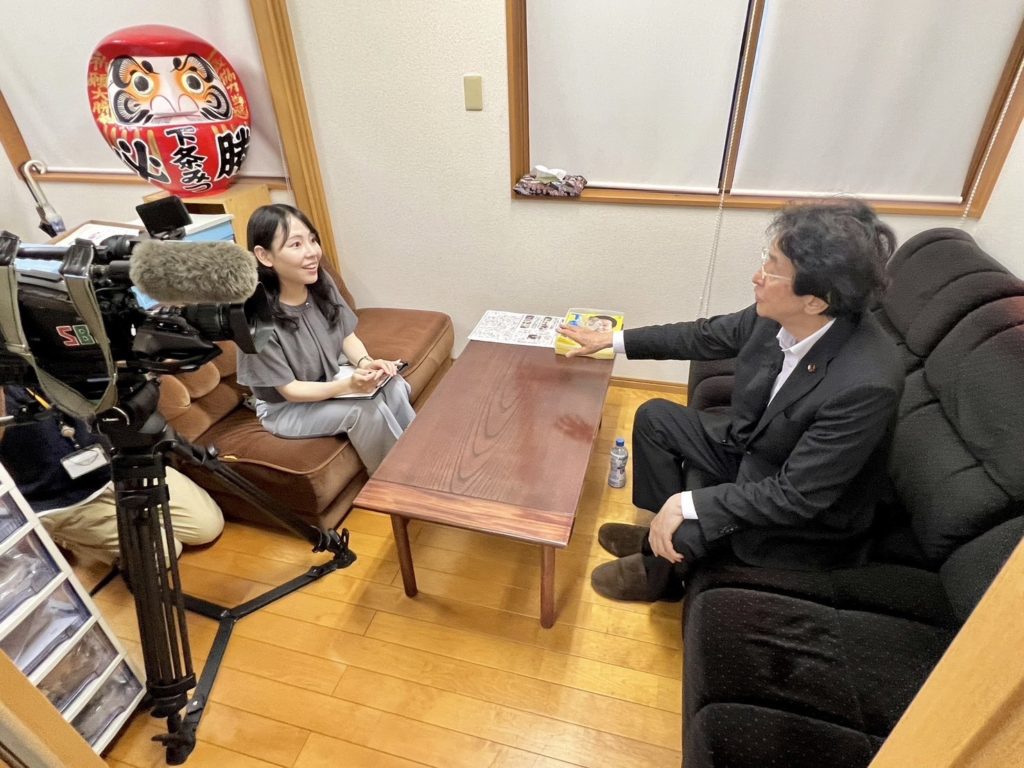 ホームSBC放送によるインタビュー取材です SBC放送によるインタビュー取材です活動報告 次期総選挙に向けての番組の取材で来られました。活動状況、争点など多岐に渡りお話をさせて頂きました。 番組の予定は、8月2日とのことです、また、確定しましたらご連絡させて頂きます。
