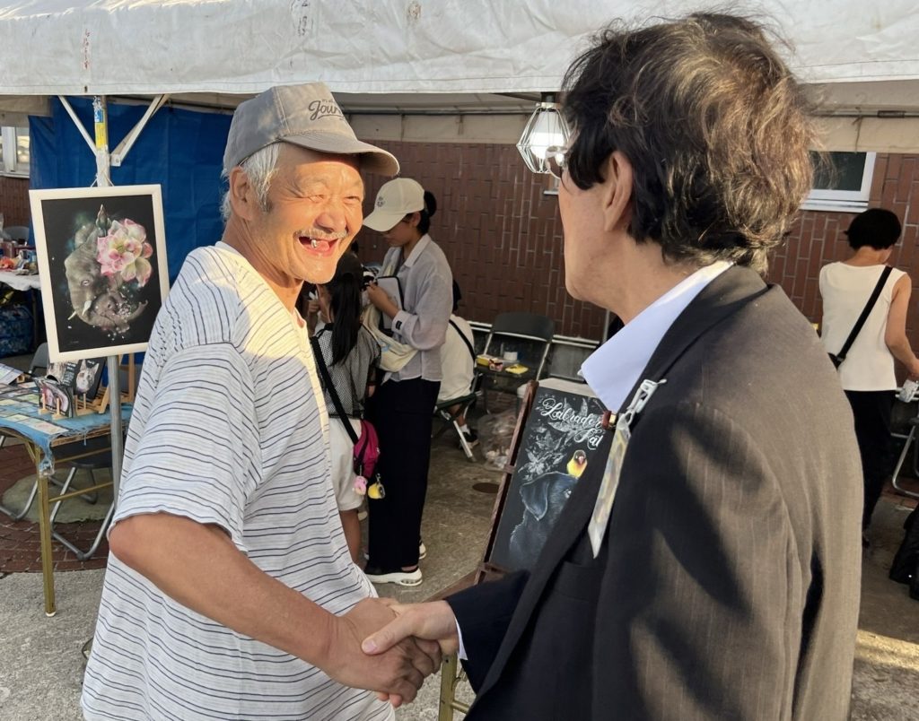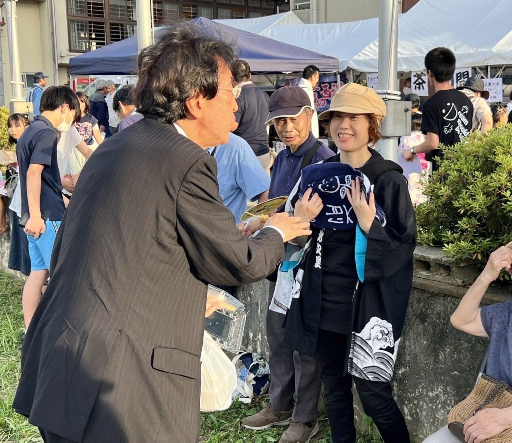 ホーム筑北村•夏まつり筑北2024です 筑北村•夏まつり筑北2024です活動報告 こちらは天気は晴天で、正にお祭り日和でした。多くの人で、暑さも加わり、もうわんわんでした。僕も色んな方にお声かけ頂き参加致しました。 ステージでの学生さんのバンドもあり余計盛り上がって、僕もついつい、はい、焼き鳥、フランクフルト、焼きそば、もうもう買いすぎ、食べすぎました。でも、美味しかったですー、へへ。 空には🌈もでてお祭りを歓迎しておりました。ご関係の全ての皆様に、幸多かれとお祈りいたします‼️