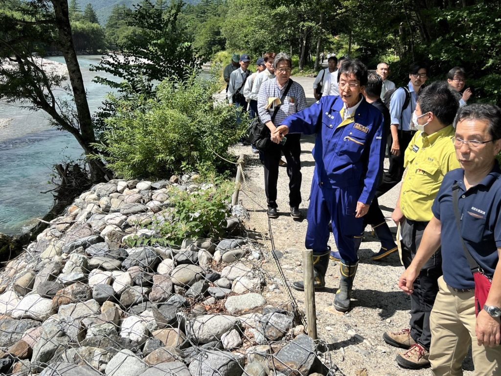 国土交通省、環境省、農林省林野庁、県松本建設事務所、観光協会、旅館組合、自然公園財団の方々が同行して頂きました。
