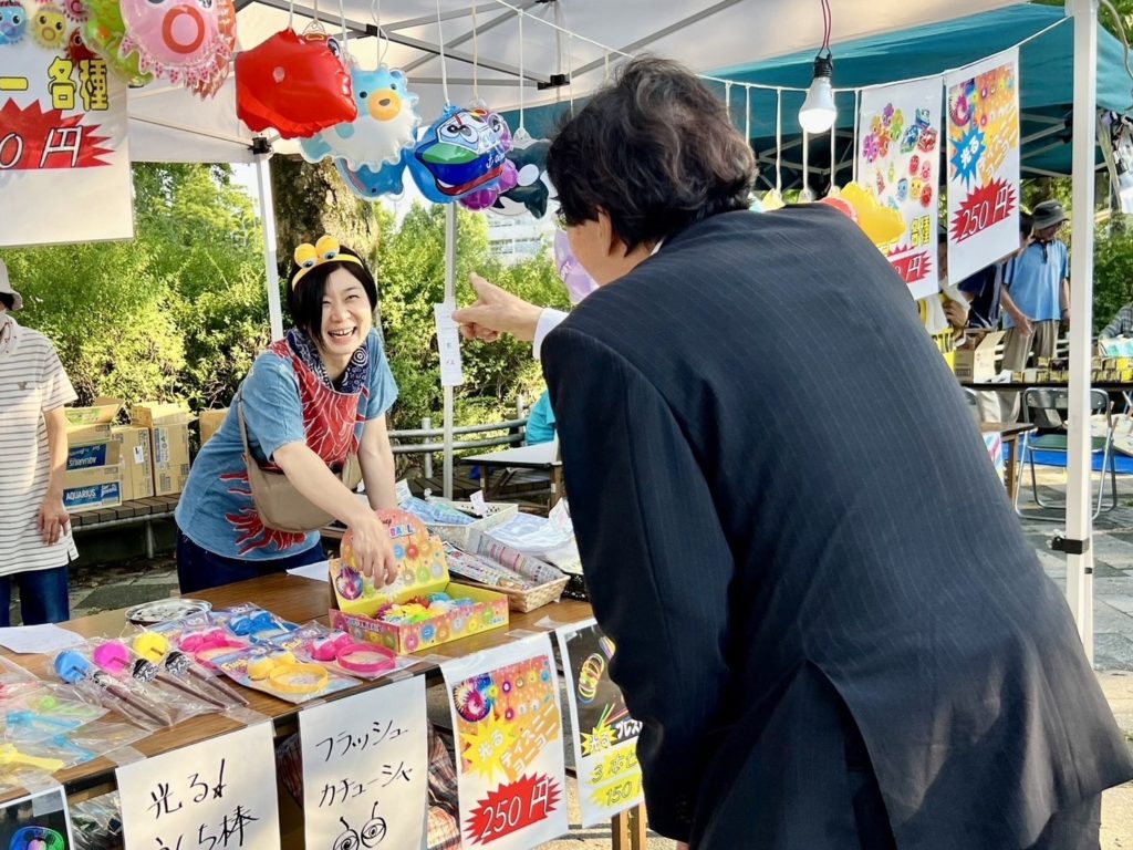 日中は暑かったですが、始まる頃になり、少し気温が涼しくなってましたが、やはり、夏祭り、多くの方々が来られ、わんわんでした。ステージでは、三郷太鼓や生徒さん達の演奏、とても元気が出る素晴らしいものでした。そして出店では、お好み焼き、焼きそば、焼き鳥、かき氷など、長蛇の列でしたが、はい、しっかりと買わせて頂き、お腹に入れました、美味しかったです。